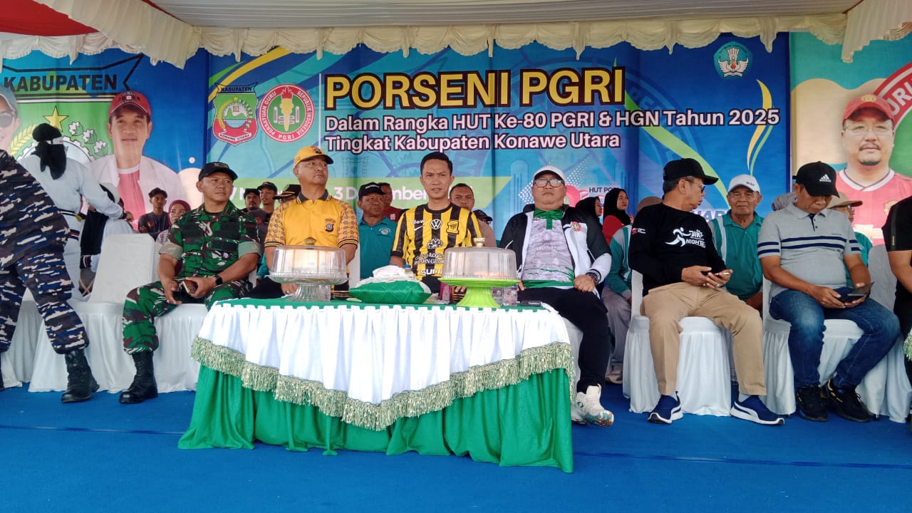 RagamTerkini.com,– Bupati Konawe Utara, H. Ikbar, S.H., M.H, pada hari ini Kamis (27/11/2025) menghadiri upacara sekaligus membuka secara resmi Pekan Olahraga dan Seni (PORSENI) PGRI dalam rangka HUT ke-80 PGRI dan Hari Guru Nasional tingkat Kabupaten Konawe Utara. Kegiatan akbar ini dipusatkan di Lapangan Kecamatan Oheo, juga dihadiri oleh Jajaran FORKOPIMDA, sejumlah Kepala OPD, serta guru-guru dari seluruh PGRI kecamatan se-Kabupaten Konawe Utara.