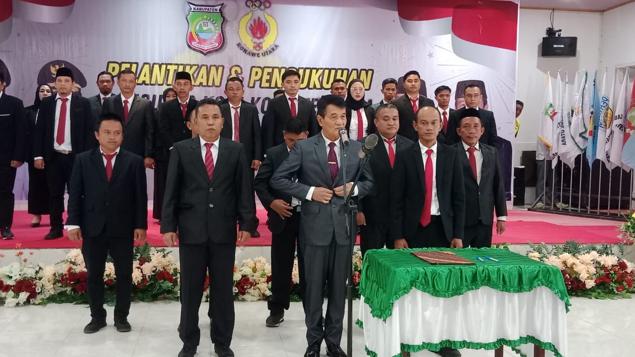 Acara pelantikan turut dihadiri anggota DPRD Konawe Utara Saf Ali, jajaran Forkopimda, para kepala OPD, camat se-Konawe Utara, serta tokoh-tokoh olahraga.