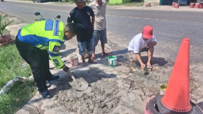 Polantas Bersama Warga Perbaiki Jalan